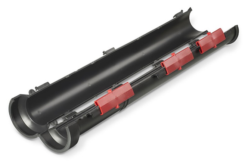 Coverall deelbare kokers zijn voor u beschikbaar in vier afmetingen: ø60 mm, ø110 mm, ø160 mm en ø217 mm. Iedere kabelkoker is 1.000 mm lang.
