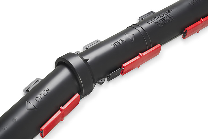 Zijn er aangesloten en in gebruik zijnde kabels of buizen die bescherming nodig hebben? Dan heeft Electroplast hiervoor een passende oplossing: de Coverall deelbare kabelkoker.